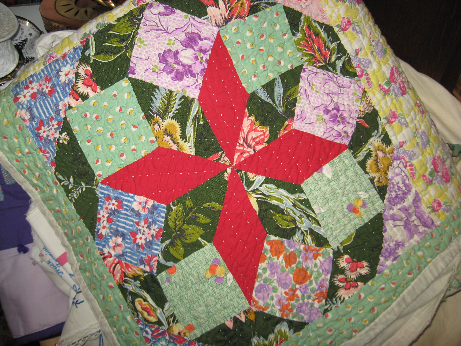 I feel sad when I think of all the work that went into these quilts and how unloved they are now. Several were priced at $40.00 or less, certainly a pittance when one thinks of the hours spent planning, cutting, and stitching them. I hope they find good homes.